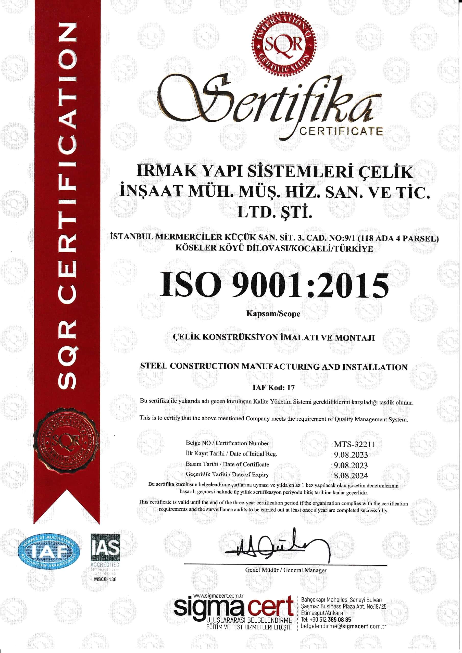 Çelik yapı ve betonarme yapı üzerinde Kocaeli – Gebze’ de faaliyetini sürdüren Irmak Yapı Sistemleri, üretimden montaj sürecine kadar devam eden süreçte tüm ürün ve hizmetlerde kalite belge ve sertifikaların gerekliliklerinden daha fazla özen göstererek zamanında ve tam olarak işini teslim eder.
